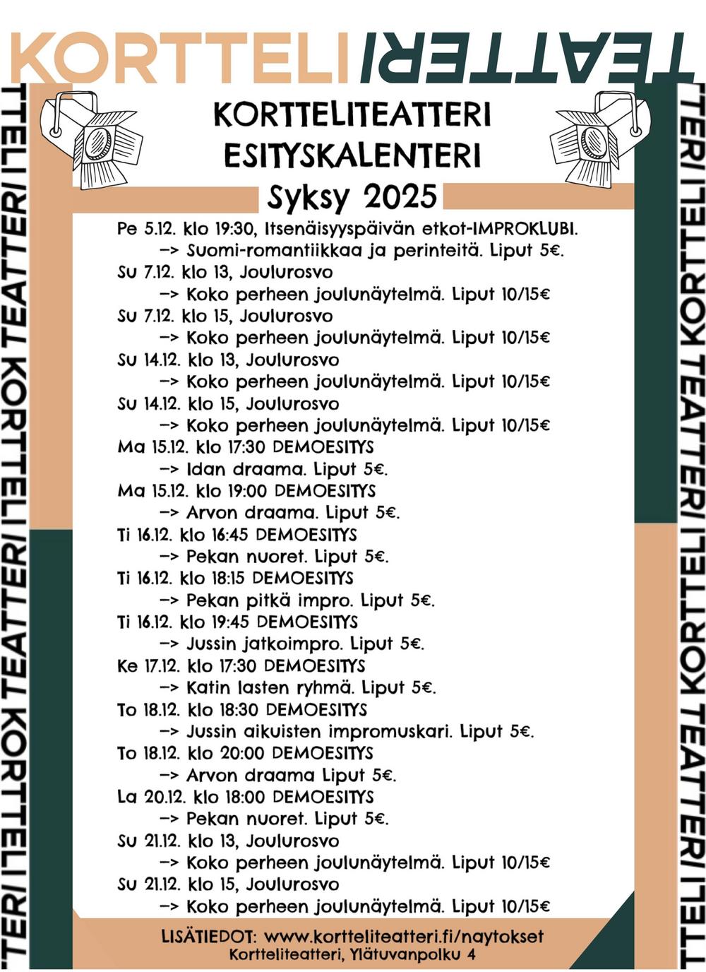 Jos olet himokävijä, voit ostaa kausikortin! Se on pääsylippusi kaikkiin syyskauden näytöksiin! Osta kausikortti täyttämällä oheinen lomake: