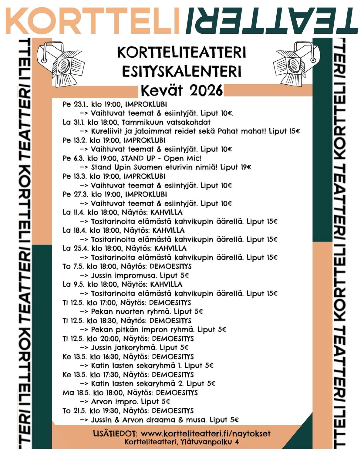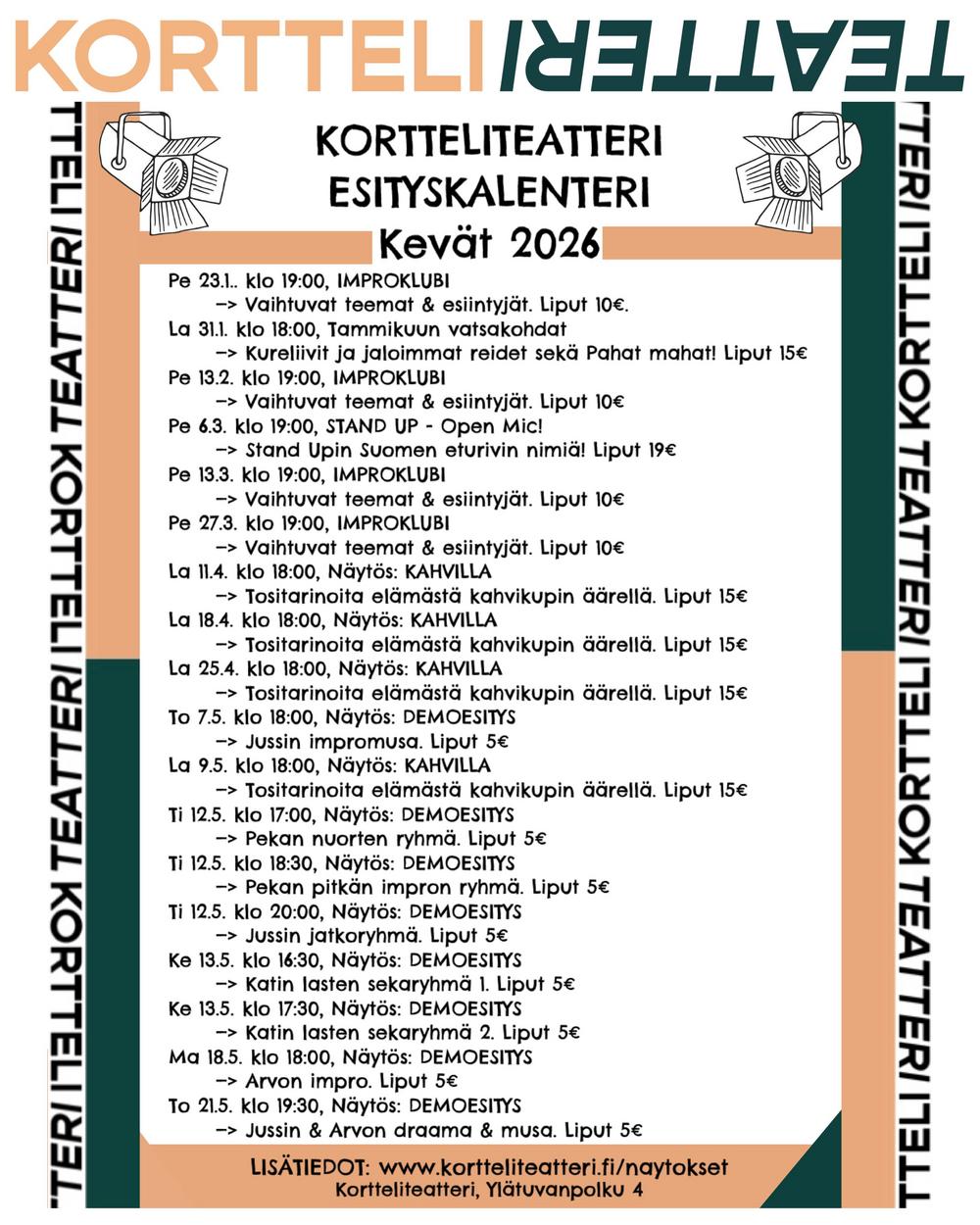 Jos olet himokävijä, voit ostaa kausikortin! Se on pääsylippusi kaikkiin kevätkauden näytöksiin! Osta kausikortti täyttämällä oheinen lomake: