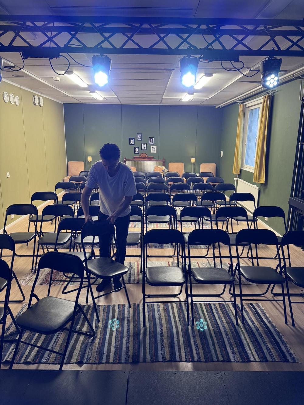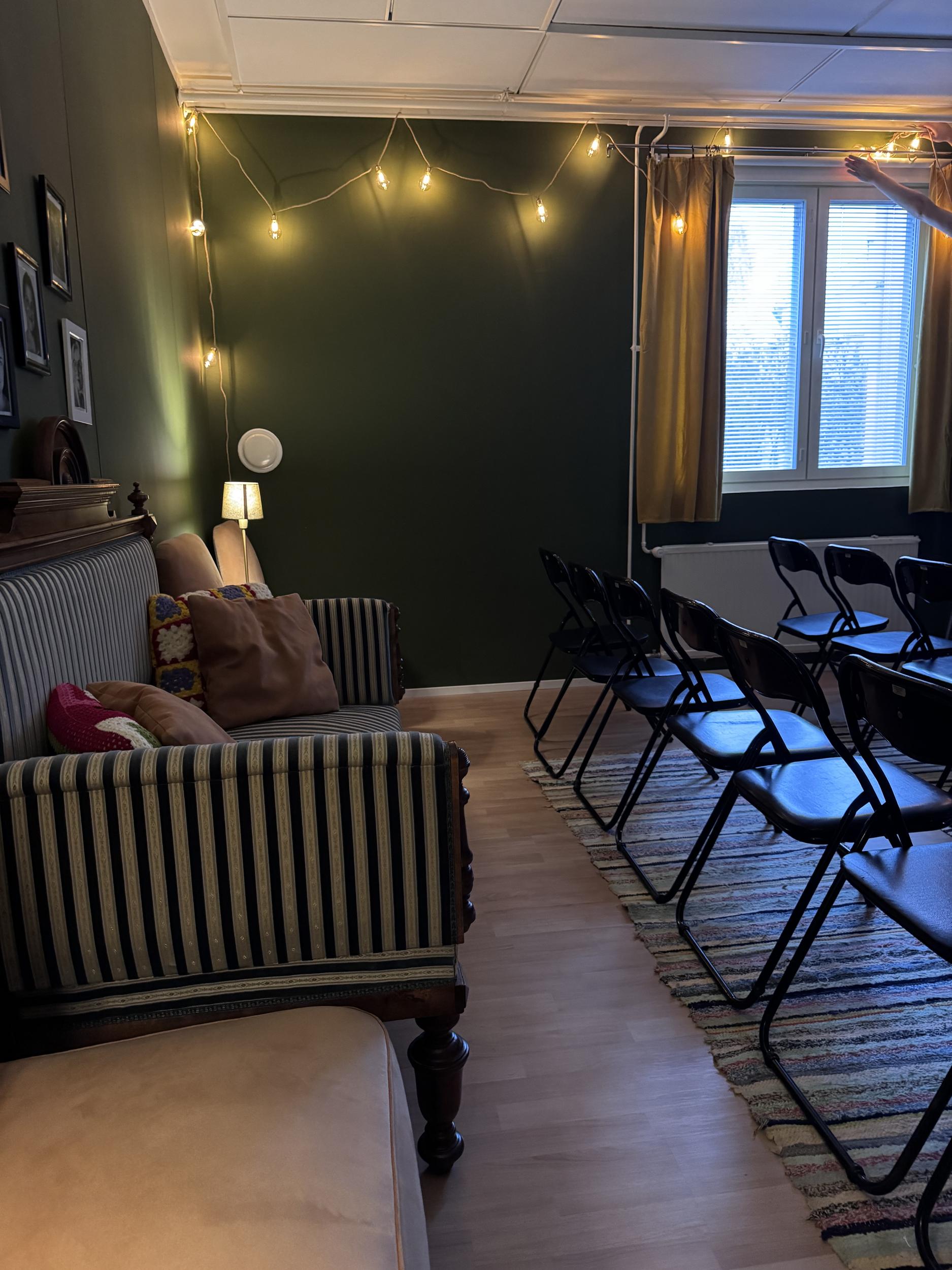 Teatterista löytyy pieni esiintymislava, valot, kevyt äänentoisto, kosketinsoitin, videotykki, kahvio, jossa astiasto noin 40:lle. Teatterin puolella katsomopaikkoja on max. 50:lle, kahviossa istumapaikkoja n 25:lle. Meidän kauttamme on mahdollista tilata myös koko paketti - tarjoilut ja ohjelmat. Emme vuokraa tilaa bilekäyttöön.