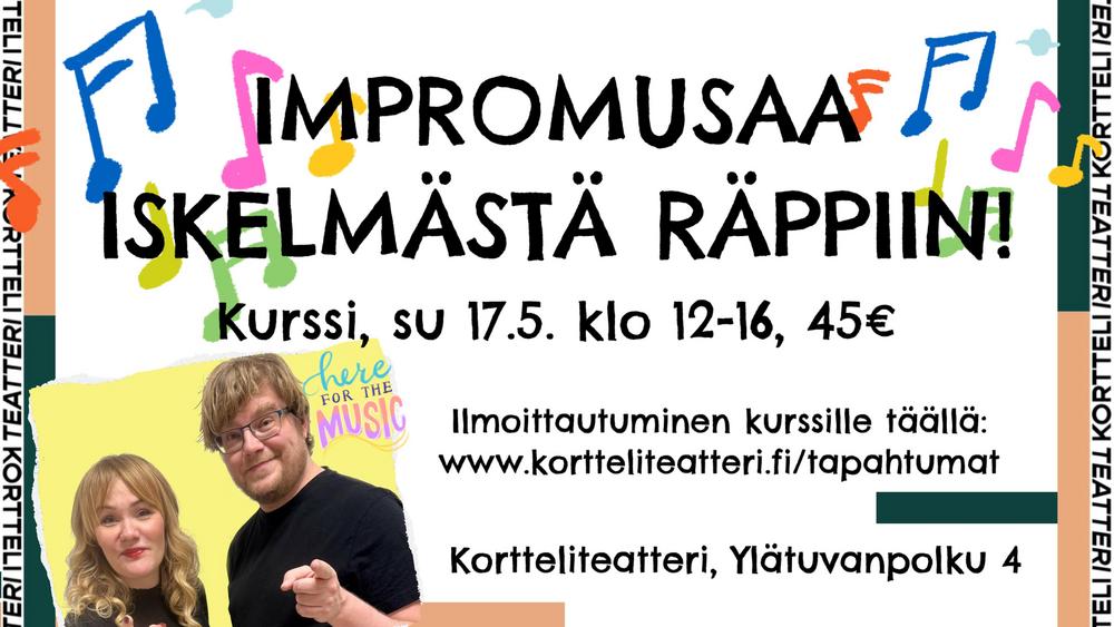 Impromusaa iskelmästä räppiin Oletko jo kokeillut musiikki-improvisaatiota ja kaipaat uusia näkökulmia tekemiseen? Haluaisitko laajentaa musiikkigenreosaamistasi rennossa ja inspiroivassa…