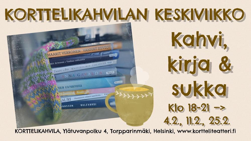 KORTTELIKAHVILAN KESKIVIIKKO klo 18-21! KORTTELIKAHVILAN KESKIVIIKKO on maksuton, yhteisöllinen ilta, jossa on vaihtuvia teemoja ja tapahtumia. Kahvi, kirja & sukka: Neulominen yhdessä muiden kanssa…