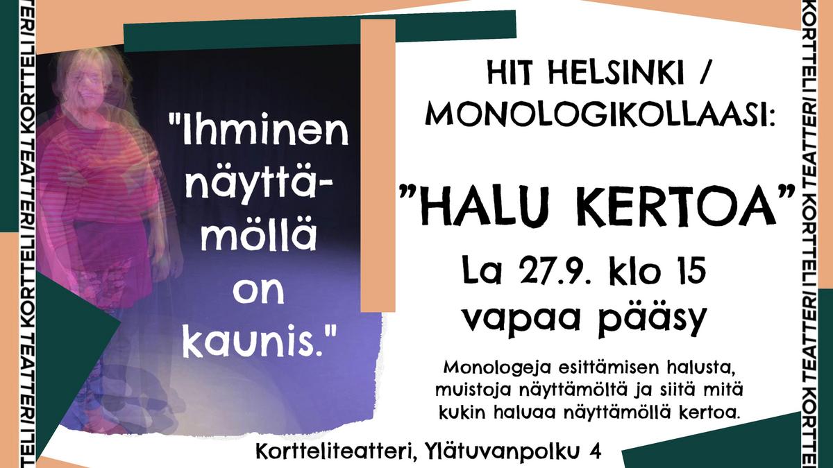 HIT Helsinki: HALU KERTOA -monologikollaasi