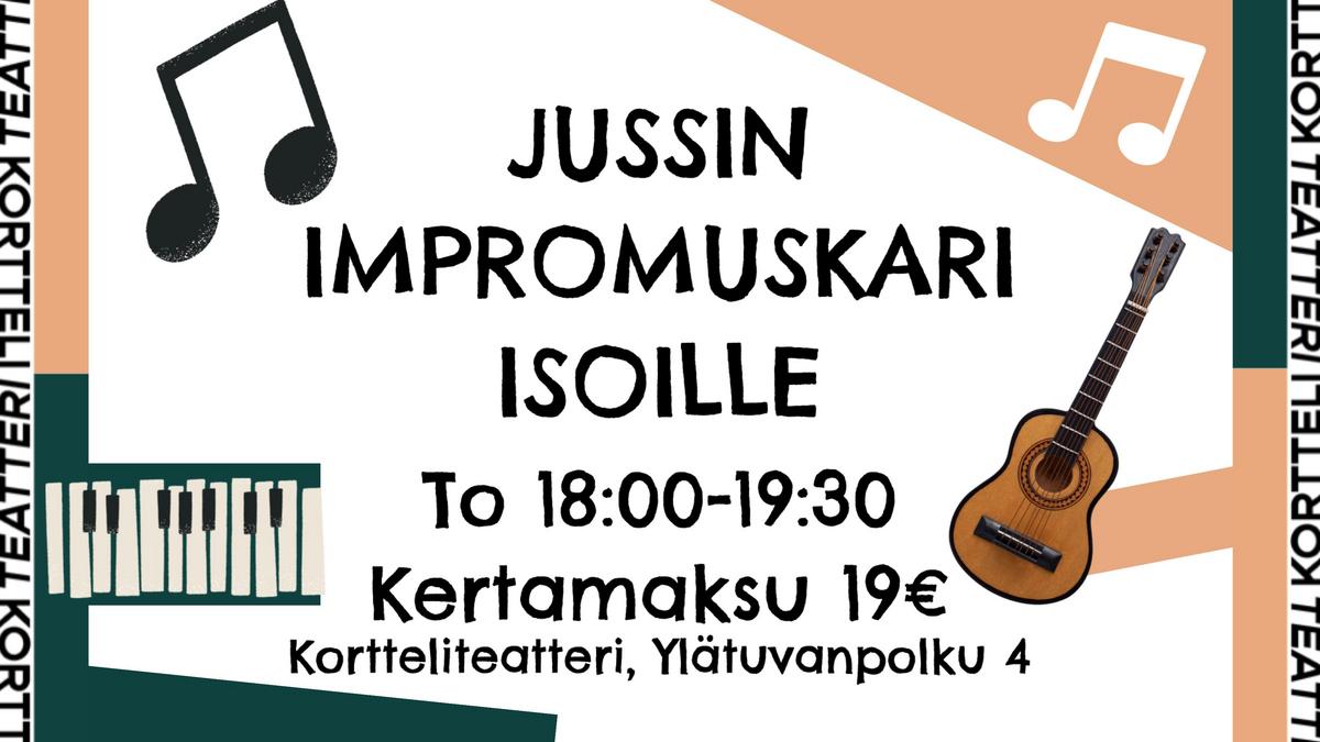 Jammaile musisoiden ja improvisoiden, ei taitovaatimuksia! Yli 16-vuotiaille. Ohjaajana toimii muusikko-näyttelijä-ohjaaja Jussi Ollila.