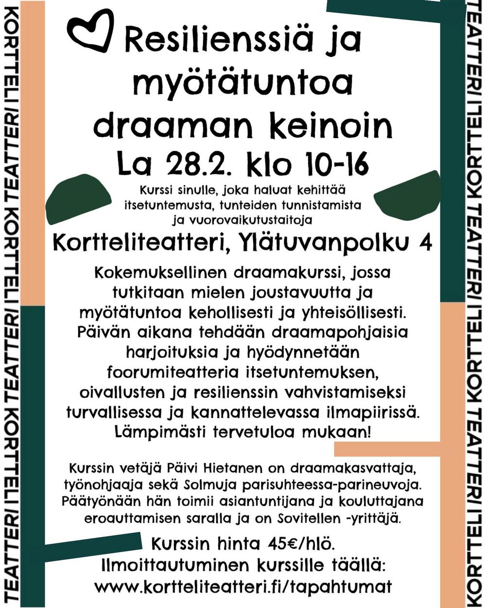 Kurssi: RESILIENSSIÄ JA MYÖTÄTUNTOA DRAAMAN KEINOIN LA 28.2.